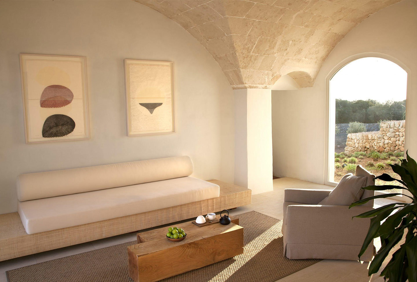 Rustic finca chic and current Balearic charm harmoniously join hands in each room at Torralbenc. Original architectural features such as fresh, whitewashed walls and wooden beamed ceilings are complemented with natural fibres and muted, earthy tones. Details to add light Menorcan flavours and a relaxed look and feel.