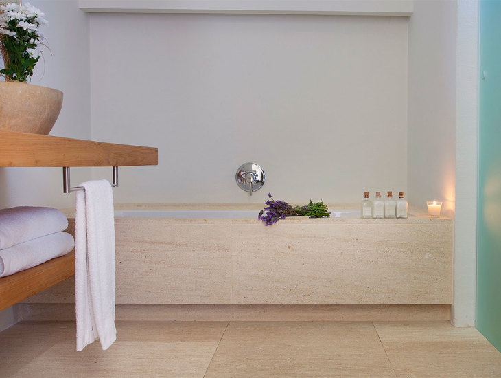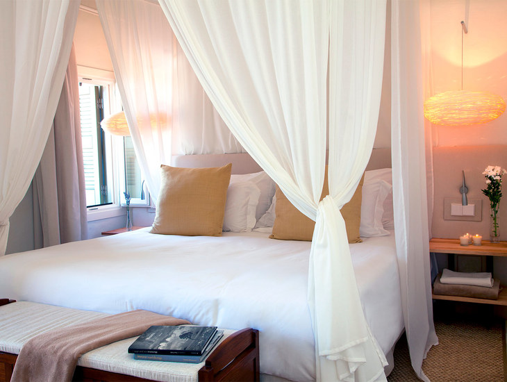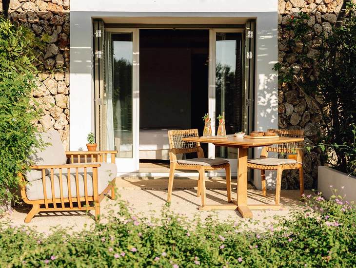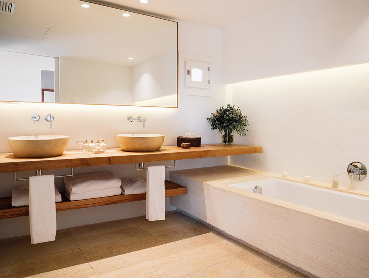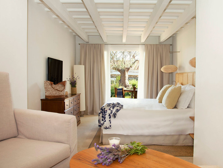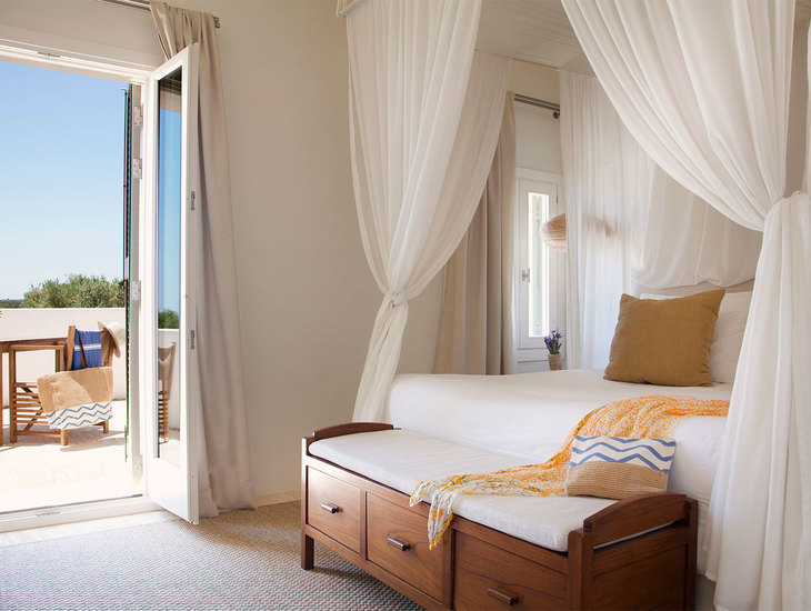 Well-decorated and clasping a pared-back design. The Superior Room is an immediate slip into a carefree, Balearic island way of living. Neat layering of natural materials and textures blend seamlessly together as if one with it. While the bleached-white walls and double acting doors flush the room in maximum light. Each room comes with Double or Twin beds, an ensuite bathroom with a soaking tub and shower, air conditioning, heating, a minibar, TV and a safe. Toiletries included.