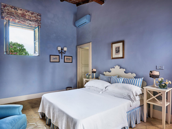 A celebration of Sicilian tradition is reflected in the design of the estate rooms following recent renovations. Inherited vintage antiques, intricate patterned ceramic tiles and daring use of colour brings flavour and unique character to each room. All while preserving its heritage as a 16th Century former feudal estate, offering an unmistakable sense of intimacy and privacy. Each equipped with a personal-use bathroom, contemporary amenities and glass pane windows and patio doors. Leading out to the estate gardens for continuous contact with nature. Essential bathroom toiletries included.