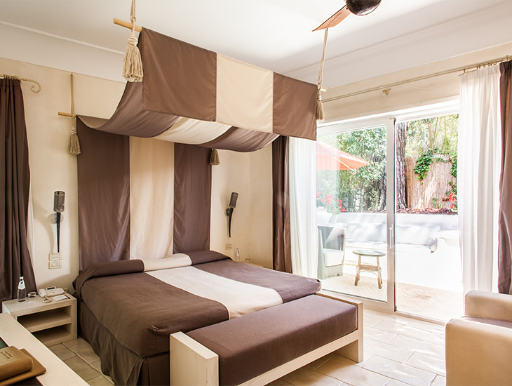 Uniting nostalgia with light-hearted and breezy castaway feelings, the Classic Garden View Rooms are relaxing and inviting spaces that feel both beguiling and intimate. Boasting spectacular views of nearby Monte Solaro, the highest point of Capri and the hotel’s Mediterranean gardens. Each room is dressed in mellow cream and cocoa, accented with terracotta floor tiles, tributes to artists such as Mirò, Magritte and Warhol, and equipped with a King Size bed or Twin beds and bathroom with a shower or bath. Toiletries included.